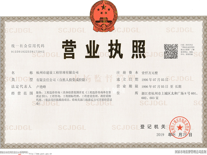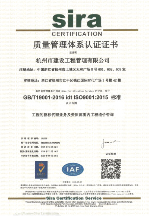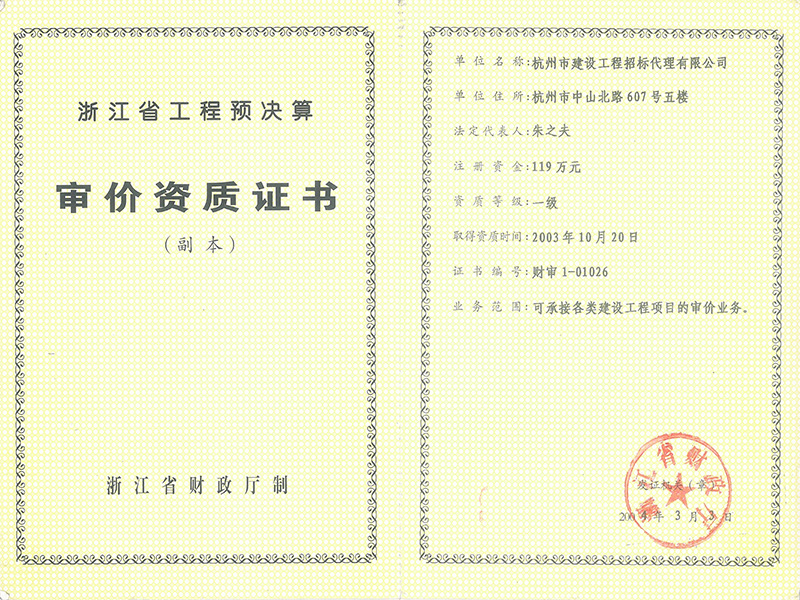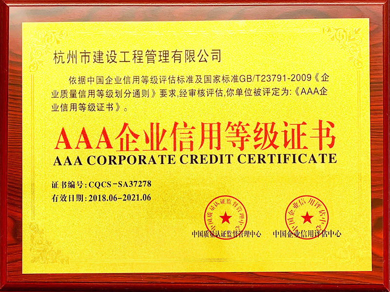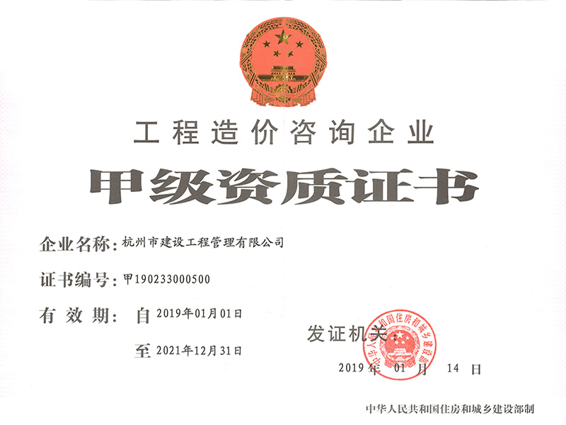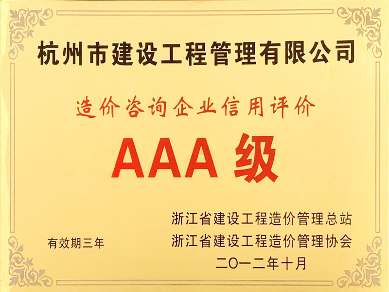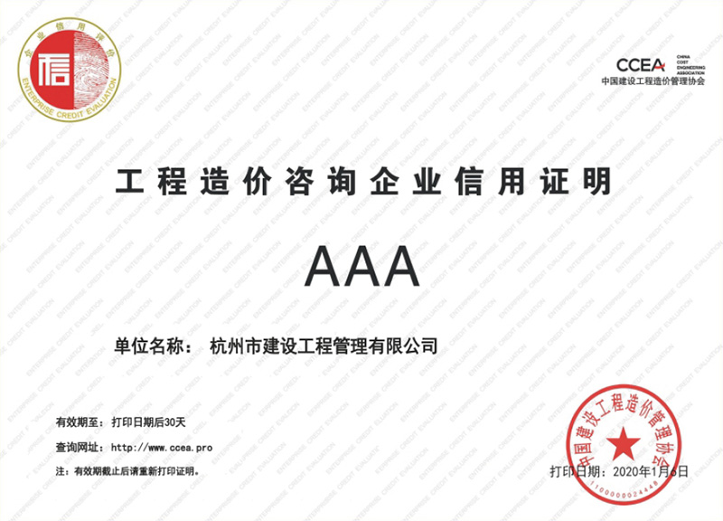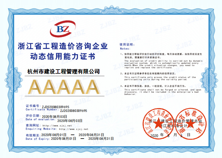 2020年浙江省工程造价咨询企业动态信用能力证书AAAAA